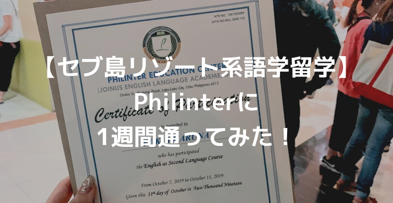 【セブ島リゾート系語学学校】Philinterに1週間通ってみた!