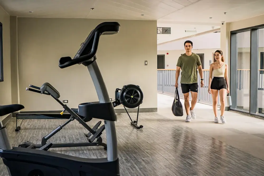 学校施設プライベートビーチ、プール、ジム、カフェテリア(毎日8:00-18:00)、自習室
