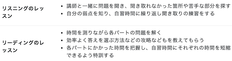 • マンツーマンレッスンでTOEIC試験問題でのあなたの弱点を把握できる