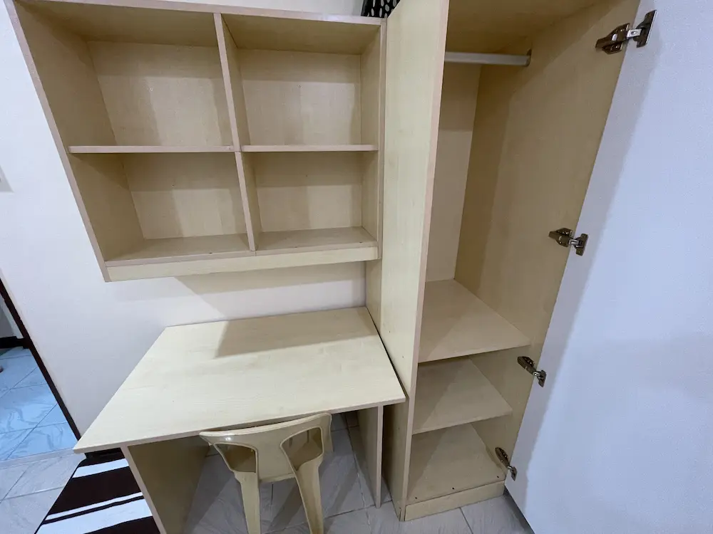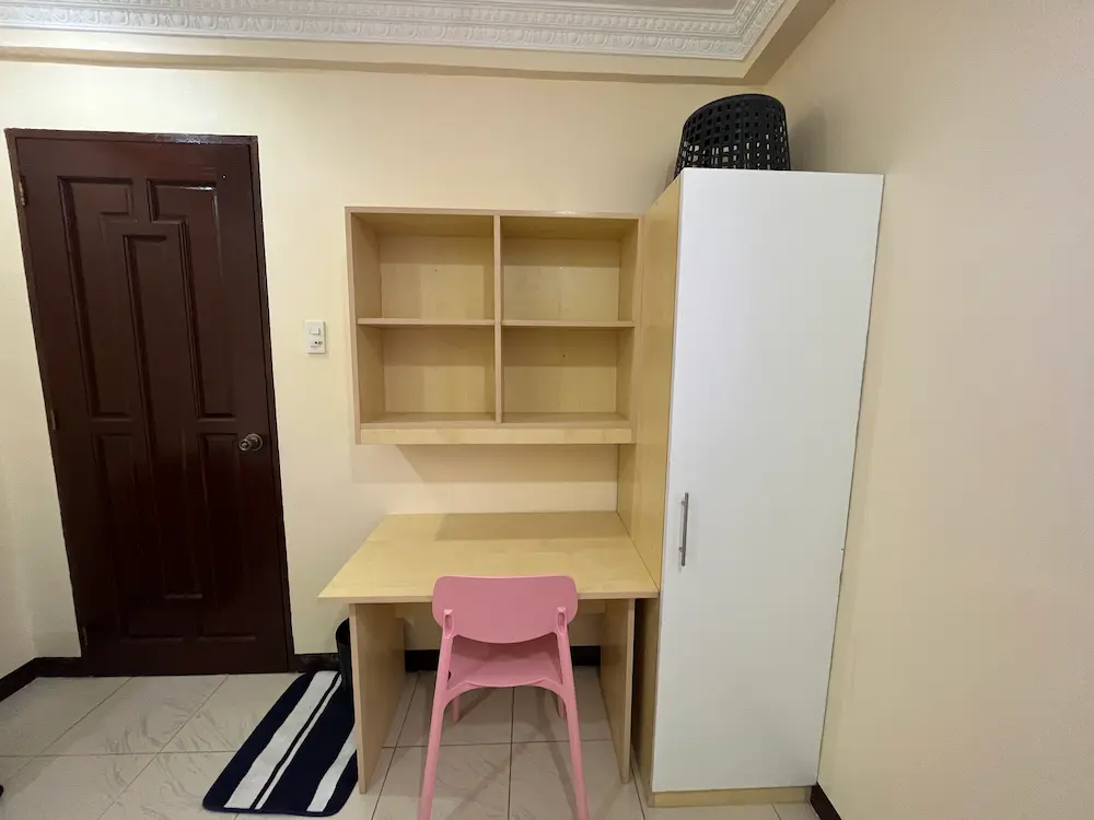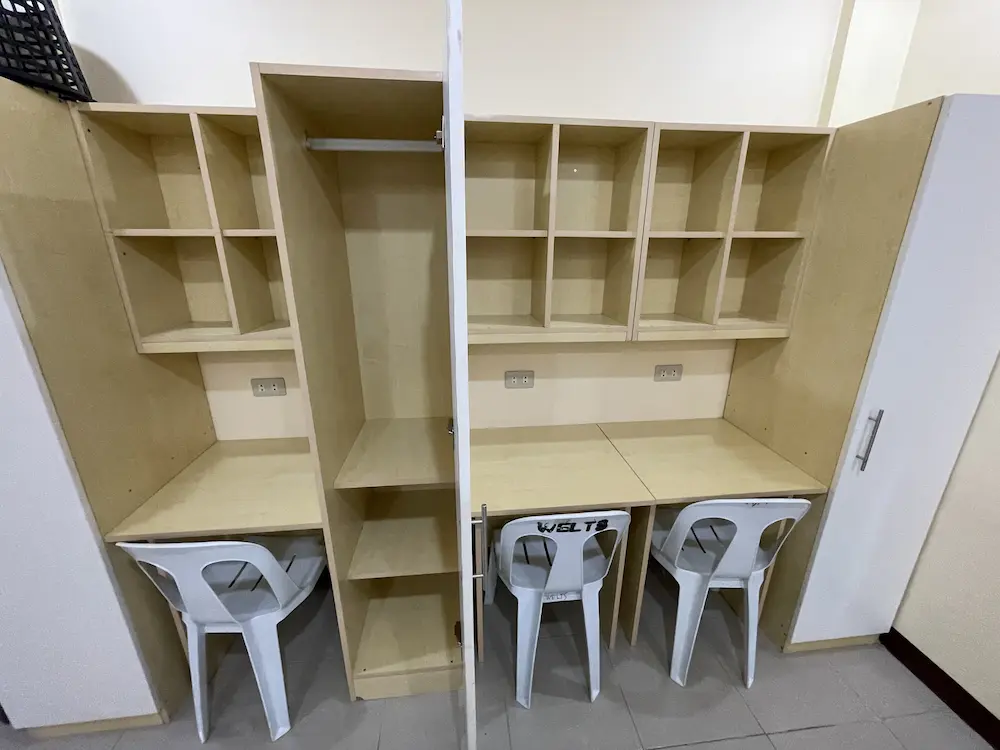 | 部屋設備 | エアコン、机、イス、冷蔵庫、クローゼット、扇風機(レンタル:200ペソ/4週) |
