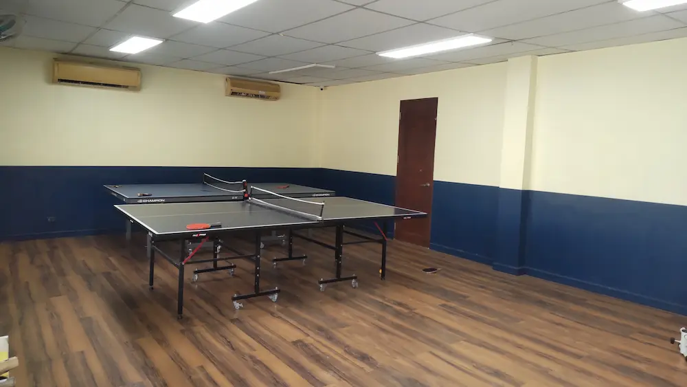 学校施設プール、自習室、売店、食堂、バスケットコート、卓球台