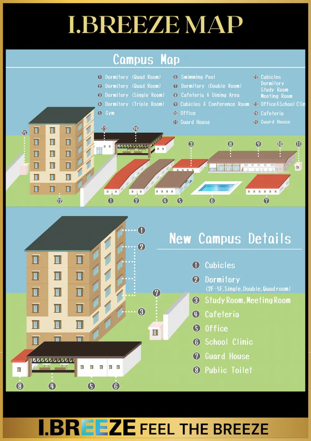 I.BREEZE校はセブ市内の中心地に位置するセミパルタ規則の韓国資本校です。