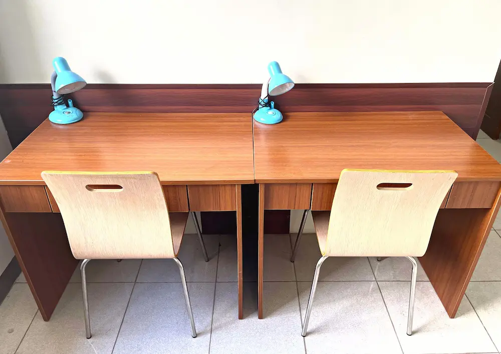 | 部屋設備 | ベッド、デスク、チェア、エアコン、扇風機、鍵付きクローゼット、ホットシャワー&トイレ、ミニ冷蔵庫、ケトル |