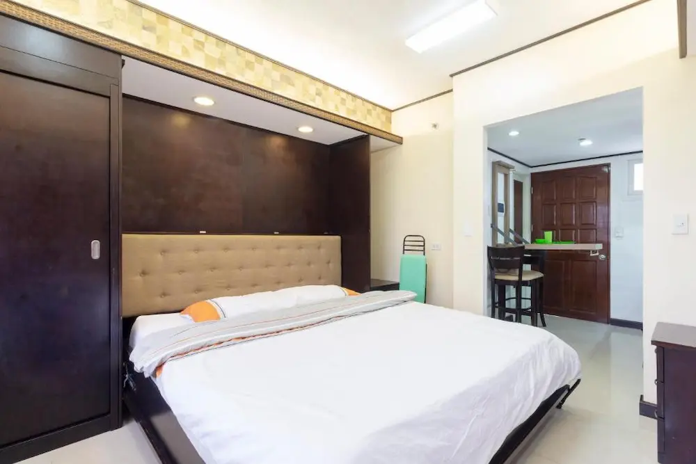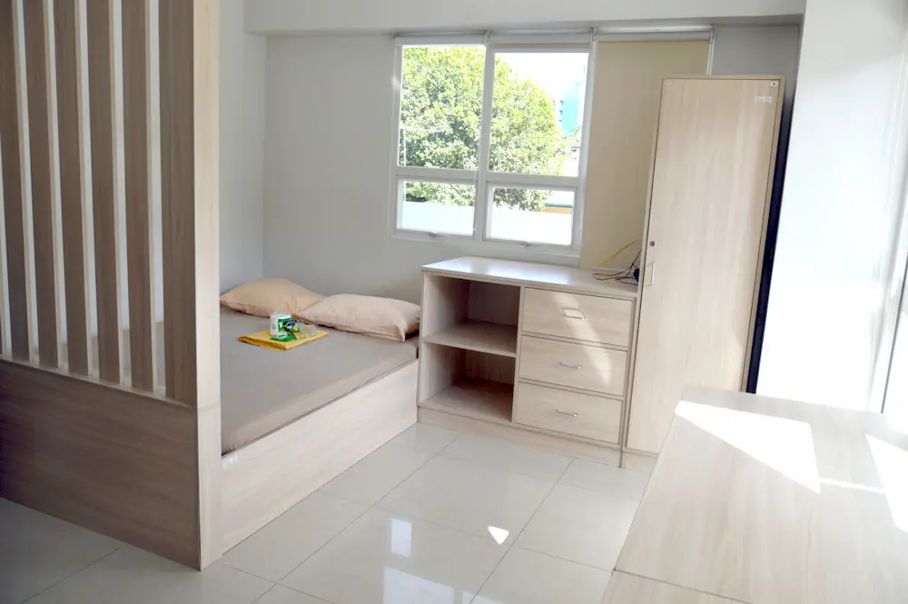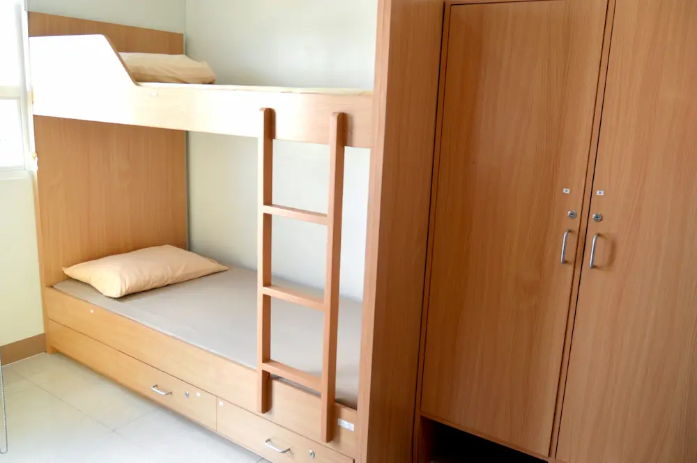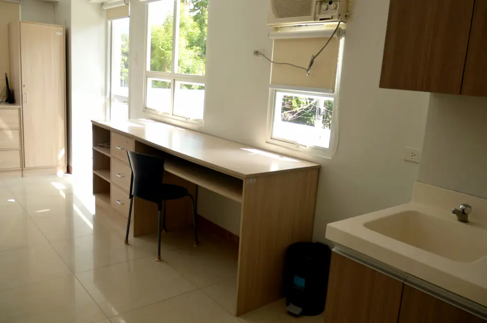 高級コンドミニアムでの滞在で、1人〜3人部屋のタイプから選択できます。 ITパークという人気ビジネス街から徒歩5分程度の好立地に位置し、屋上にはプールもあります。 寮のロビーは、24時間セキュリティ体制が敷かれていますので治安面でもご安心して頂けます。