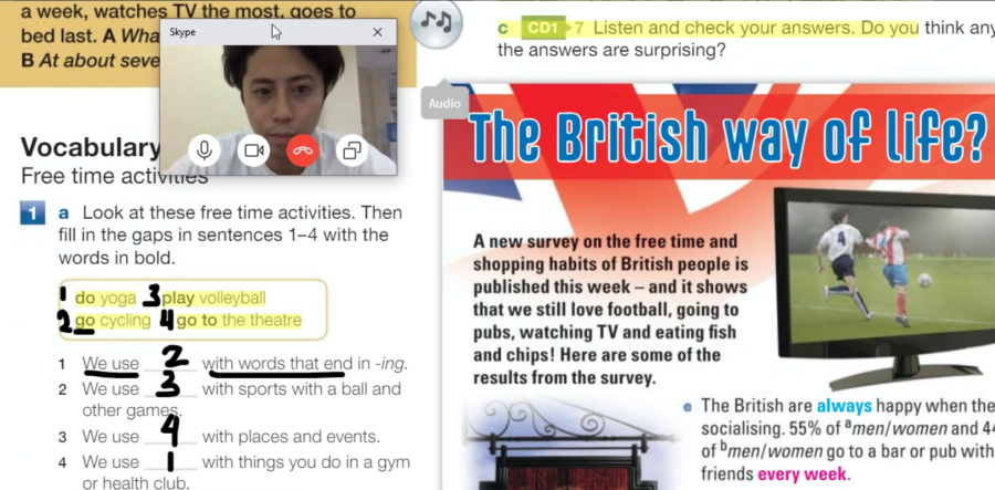 平日は毎日決まった時間に授業を受け、2名の講師がローテーションで担当してくれます。