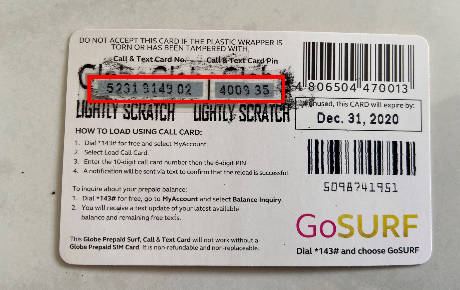 このロードカードは、50ペソ/100ペソ/300ペソ/500ペソが売られています。