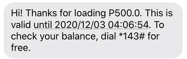とはいえ、コストは600ペソ(約1,300円)ほど支払えば、30日間で4GB分のロードを購入できます。