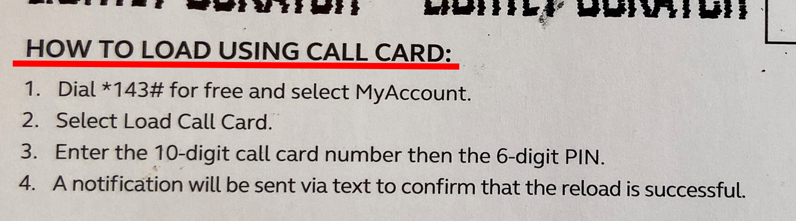 ロードをした時と同じように、「*143#」に電話をかけて設定する方法と、SMS(8080宛)にテキストをする方法です。