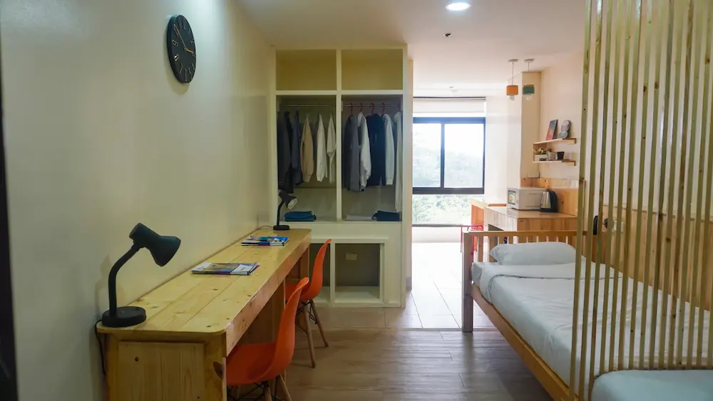 フィリピンでは珍しい木を基調とした雰囲気の作りとなっており、温かみのあるお部屋となっております。