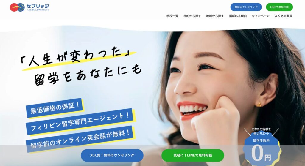 セブリッジはフィリピン、マルタに特化した留学エージェントです。フィリピンだけで60校以上、マルタで20校以上の学校と提携しています。