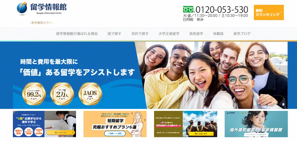 留学ジャーナルでは、50年にわたり、業界最大級の20万人以上の留学生から選ばれており実績のあるエージェントです。また、海外サポートスタッフ連携で24時間日本語サポートがついていて安心して留学に専念することができます。