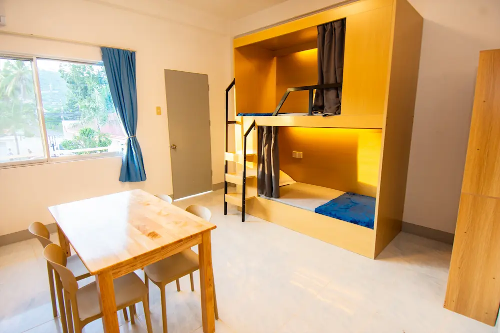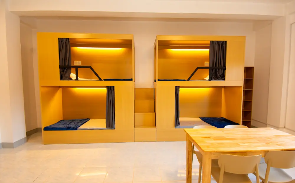 1人部屋から3人部屋はセミダブルサイズのベッドで広々と快適にお過ごしいただけます。4人部屋と6人部屋は、カーテン付きのキューブ型2段ベッドを採用しており、比較的プライベートな空間が保たれています。
