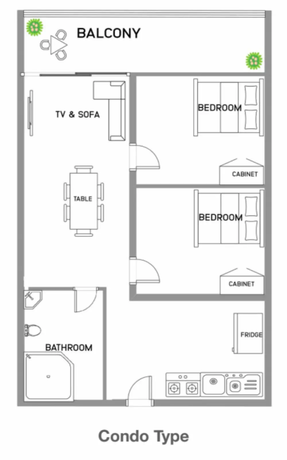 コンドミニアムタイプ(セミシングル)※親子留学の場合3~4人利用可