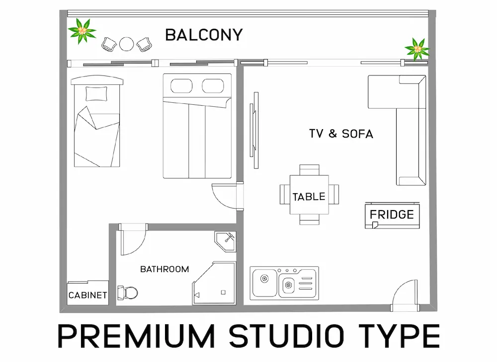 リーズナブルなスタジオタイプ(1人、家族2人まで)、料理ができるPremiumスタジオタイプ(1人、2人)、料理ができるリビング・トイレバス共有タイプのシェアタイプ(1人、2人)、家族用のコンドタイプ(1人、家族4人まで)が用意されています。