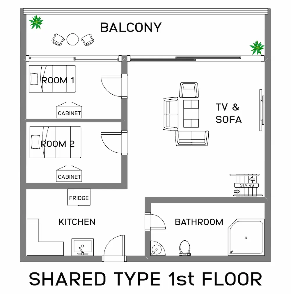 シェアタイプ (1人部屋 窓あり・窓なし、2人部屋)