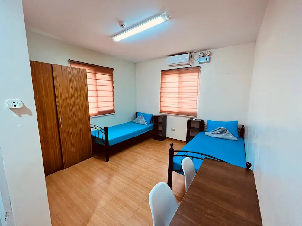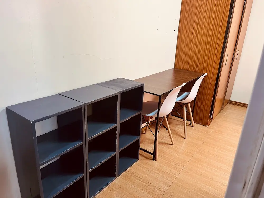 | 部屋設備 | 2部屋で共有の冷蔵庫(廊下に設置)、ウォーターサーバー(各フロア)、クーラー、机、椅子、クローゼット、ユニット式のトイレシャワー(シャワーカーテンなし) |